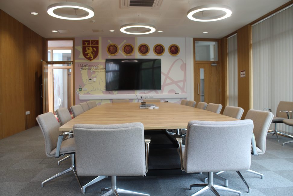 Our Conference Room is located in our new Seacole building. With a bright outlook to the front of the school it is ideal for both meetings and training sessions. This facility can also be used during school holidays. There is a large rectangular table which seats 16 around it comfortably with extra chairs provided if required, together with an 85” TV screen which may be used for the purpose of presentations or online meetings. The space also benefits from its own kitchen area with tea/coffee making facilities.