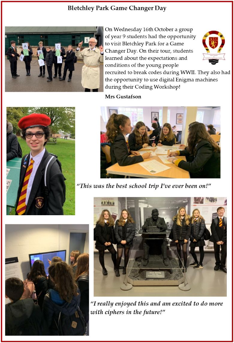 Last year we introduced The Scholar’s Programme. The aim of the programme is to extend student engagement and attainment across subjects and year levels, providing students with opportunities to develop their knowledge, interest and capabilities in the subjects of greatest interest to them. Included within the programme will be the opportunity for students to attend Game Changer Days; these are a fantastic opportunity for students to extend their learning through workshops, visits and subject days.