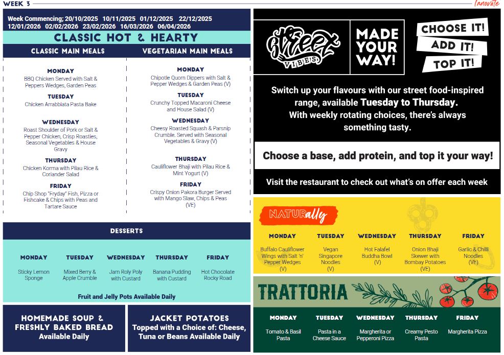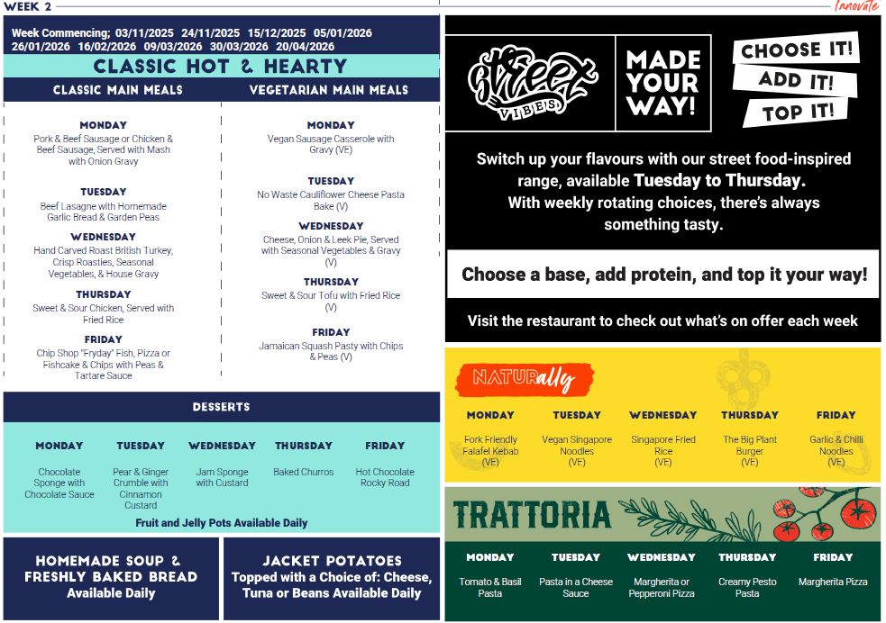 pler and easily customisable, meaning there’s always something for everyone. Every Tuesday, Wednesday, and Thursday, StreetVibes will feature a vibrant, street food-inspired menu that reflects the latest food trends, ensuring choice and variety remain at the forefront of your lunchtime experience.