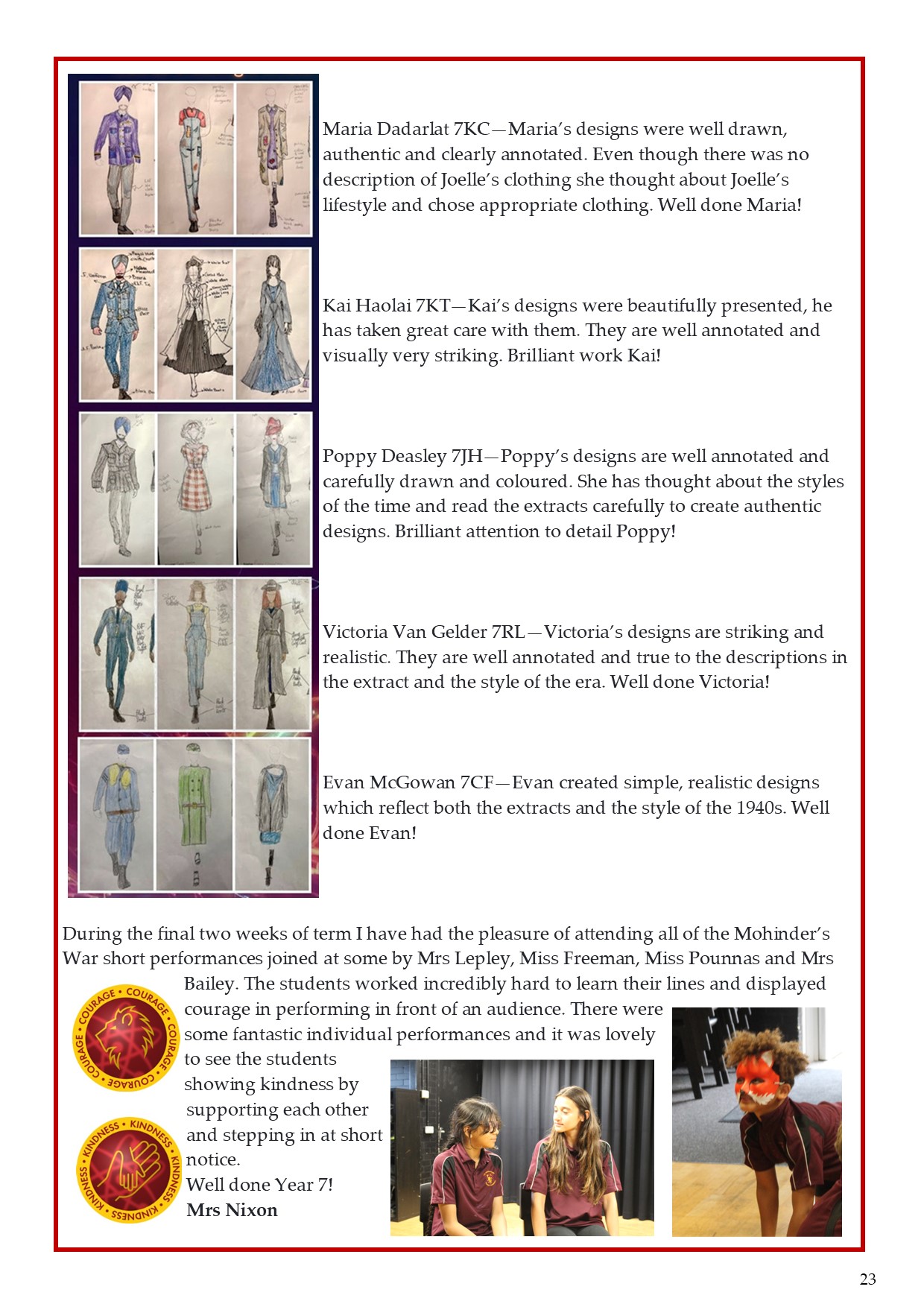 Three more of Ms Day’s Year 7 Drama classes have shared their performances of scenes from our Big Read, Armistice Runner by Tom Palmer. It was lovely to see some effective use of sound and the different ways that the chapters had been interpreted. There were also some fantastic costumes and props. A special mention goes to Melayna Chiklia 7 for making a mountain rescue helicopter!