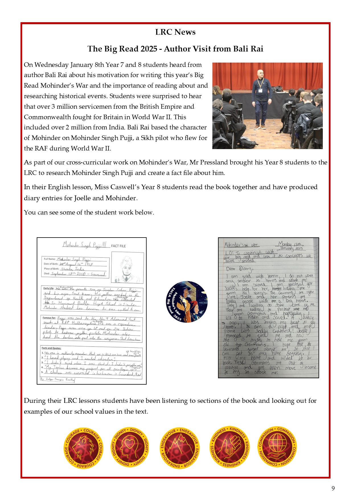 We are delighted that author of our 2025 Big Read, Bali Rai, joined us in the new year, to speak to Year 7 and 8 students about his new book, the thoughts behind it and the reasons he decided to write it. He also carried out a workshop and signed copies of his book for students.