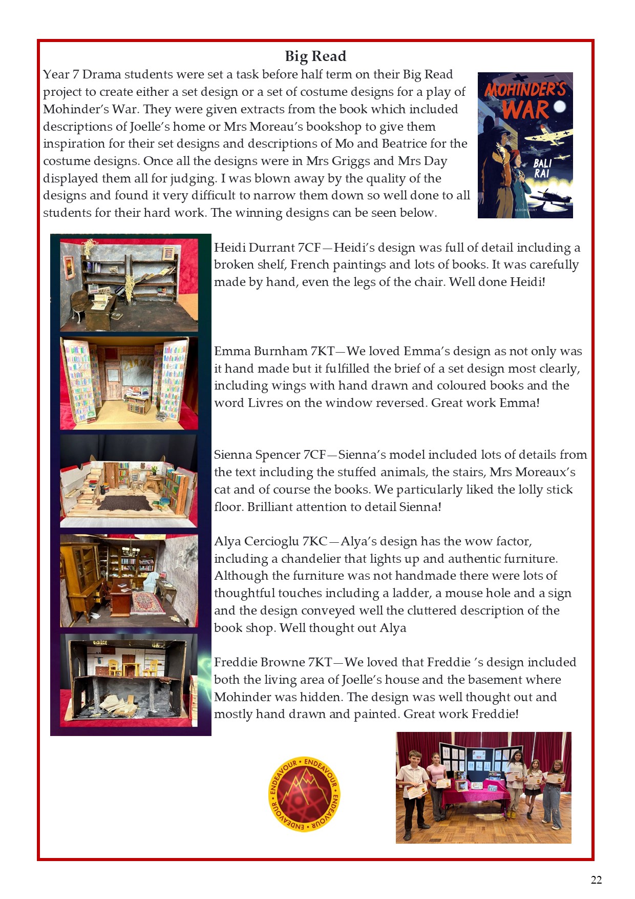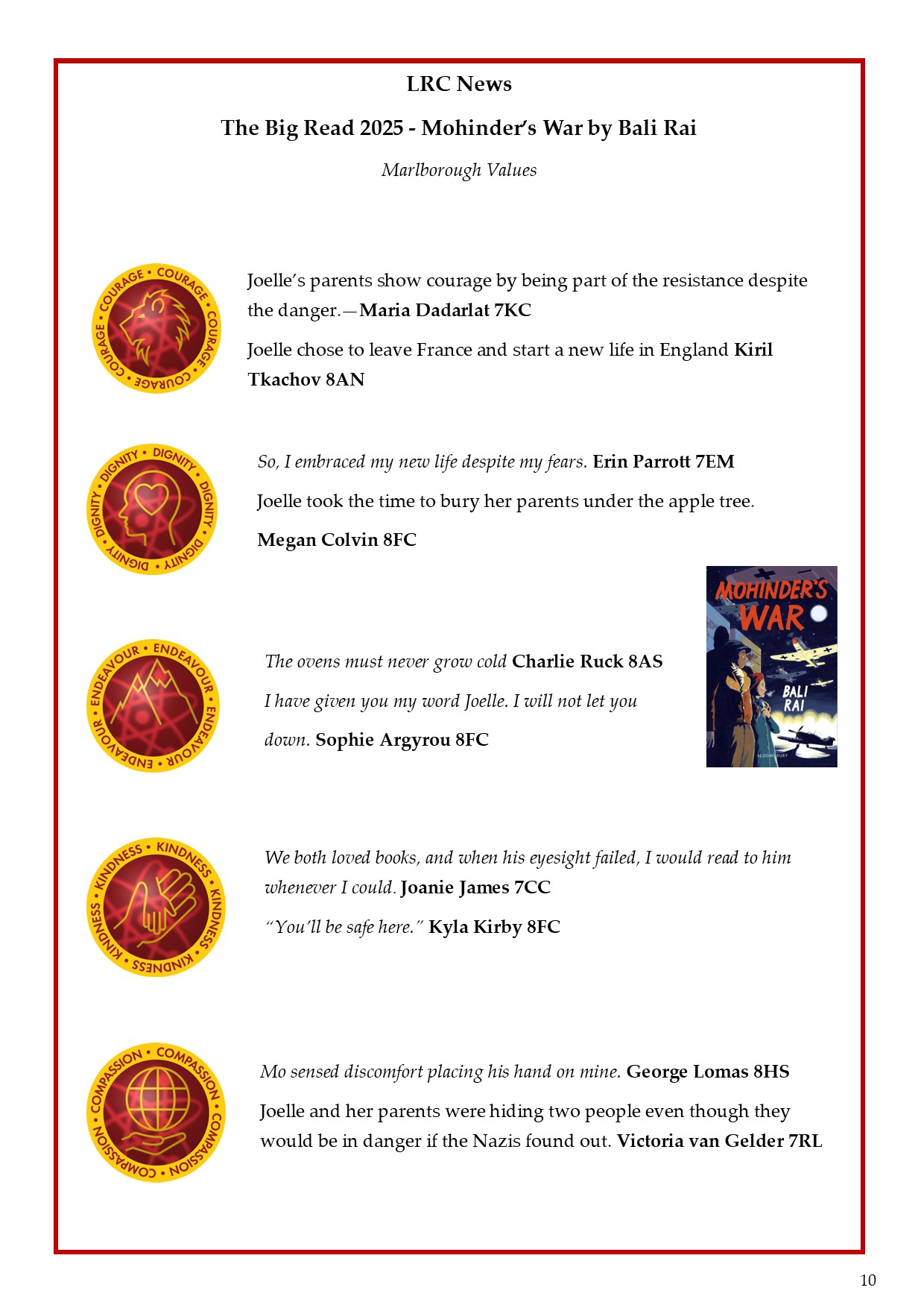 During the Spring Term we will be introducing some cross curricular activities and competitions related to the book and hope to encourage more students to read and discuss it. We will also be launching an audio version of the book read by members of staff so watch this space!